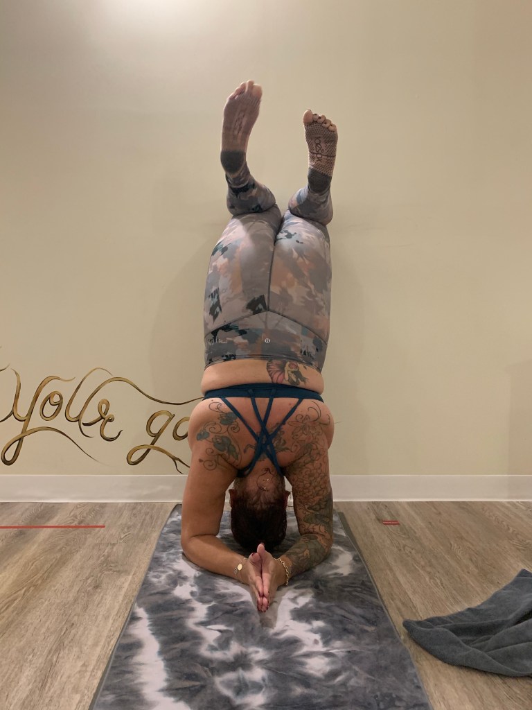 But I stopped that shit today… I felt strong during practice today. I felt like I could take lupus as well as my fear on. So after practice, I went back to basics. Forearm and Hand stands against the wall. I decided to take a risk and walk closer to the wall on my forearms and hold my legs straight up in the air for a second.